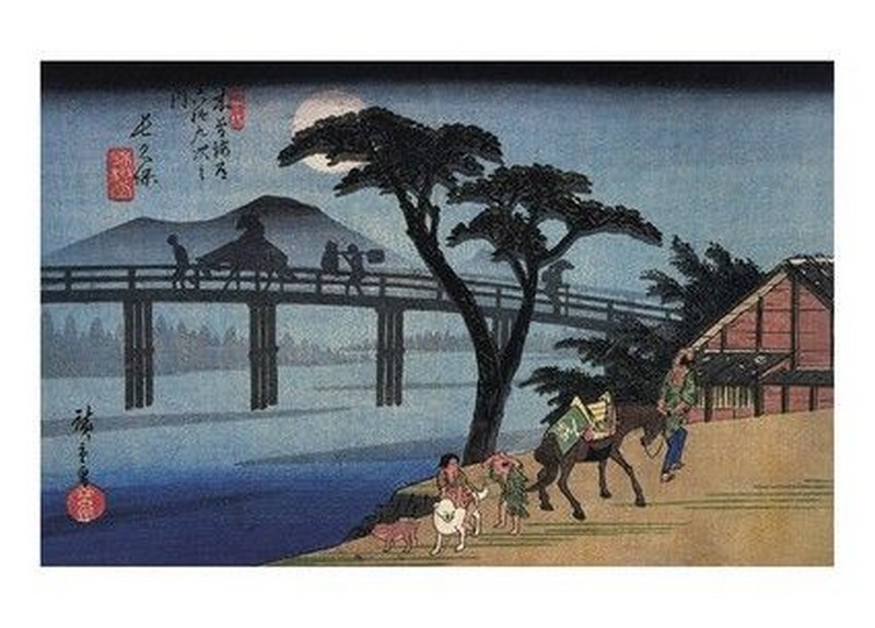 Hiroshige Man on Horseback Crossing a Bridge, c. 1835-1837