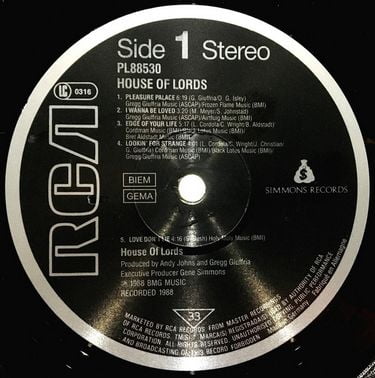 House of Lords is the debut album by House of Lords, a Giuffria spin-off band, featuring keyboardist Gregg Giuffria. It was released in 1988 on Kiss bassist Gene Simmons' own label and distributed by RCA Records. The album reached position No. 78 in The Billboard 200 Chart on February 25, 1989.