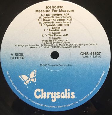 Measure for Measure is the fourth studio album by the Australian rock/synth-pop band Icehouse, released in April 1986 in Australia by Regular Records and in the United States by Chrysalis Records. It was one of the first three albums to be recorded entirely digitally.