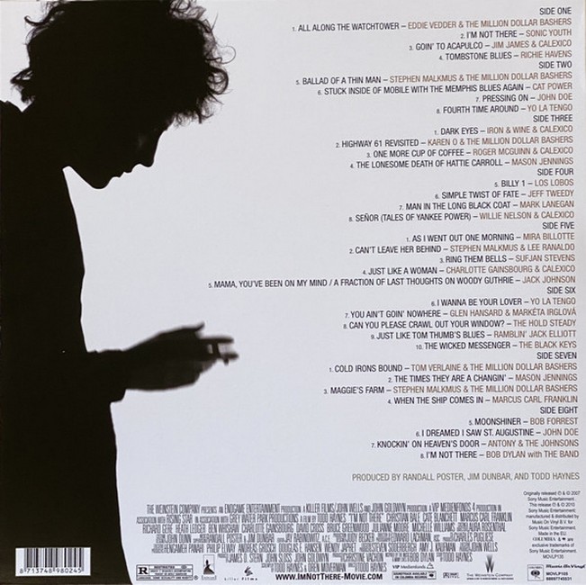 Фірмова вінілова платівка (VINYL)The soundtrack album for the Bob Dylan biopic I'm Not There was released as a double CD on October 30, 2007. It features only one recording by Dylan himself—his previously unreleased recording of the title song "I'm Not There" recorded during The Basement Tapes' sessions in 1967—plus various other artists' recordings of songs written by Dylan. These CDs do not contain the movie sound track. Fragments from less than half of the titles are heard in the film, which features more of Dylan's own recordings. The end credits relay a complete list of music heard in the film.