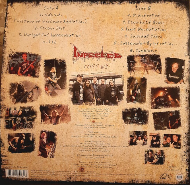 Якщо ваше серце б'ється в такт справжнього року, а душа жадає важких рифів, то нова платівка від гурту "Coffins" під назвою "Infected" — це саме те, що вам потрібно. Випущена у 2023 році на знаменитому лейблі Moon Records, ця платівка підірве ваші музичні уявлення про сучасний Death Metal!