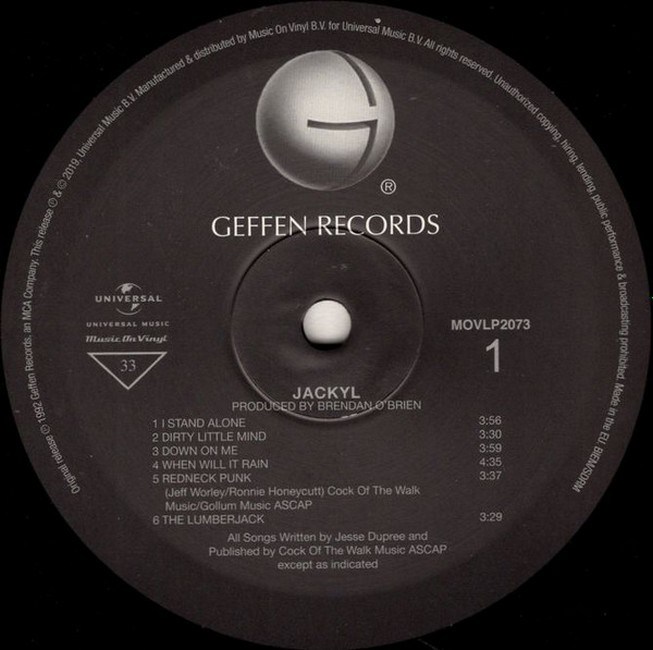 Фірмова вінілова платівка (VINYL)Jackyl is the debut album by American rock band Jackyl. It was released on August 11, 1992, on Geffen.