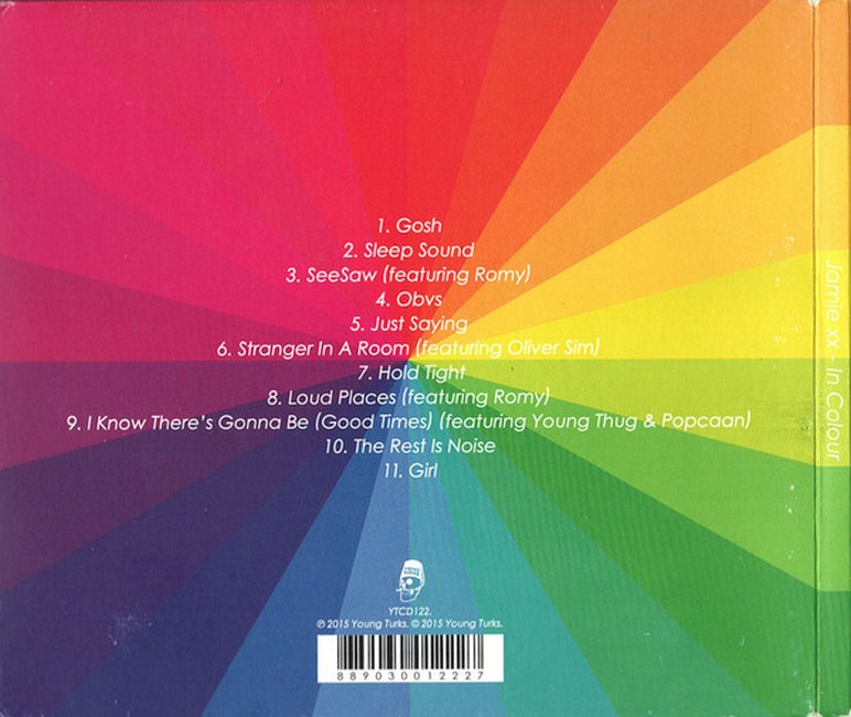 Фірмовий CD-дискIn Colour is the debut studio album by English producer Jamie xx, released on 29 May 2015 by Young Turks. The album was composed during a five-year period while a member of the indie pop band the xx, starting with his production on xx in 2009. After starting his solo career with the remix album We're New Here (2011) and singles like "All Under One Roof Raving" (2014), he was intent on making the album something of a departure from his previous work and genre. The album features guest vocals from fellow the xx members Romy and Oliver Sim, as well as from Young Thug and Popcaan. The album produced five singles: "Girl" and "Sleep Sound" as a double-single on 5 May 2014, "Loud Places" on 27 March 2015, "Gosh" on 4 May, and "I Know There's Gonna Be (Good Times)" on 22 May.