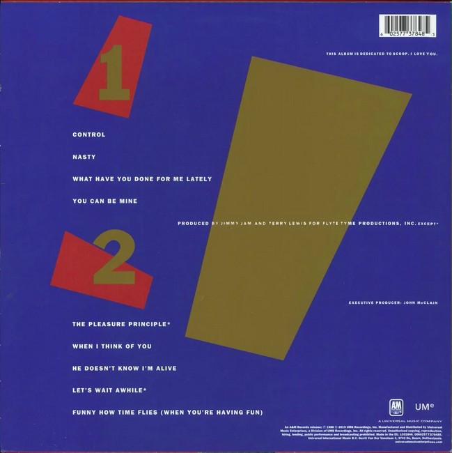 Фірмова вінілова платівка (VINYL)Control is the third studio album by American singer Janet Jackson, released on February 4, 1986, by A&M Records. Her collaborations with the songwriters and record producers Jimmy Jam and Terry Lewis resulted in an unconventional sound: a fusion of rhythm and blues, rap vocals, funk, disco, and synthesized percussion that established Jackson, Jam and Lewis as the leading innovators of contemporary R&B. The distinctive triplet swing beat utilized on the record is also considered to be a precursor to the new jack swing genre.