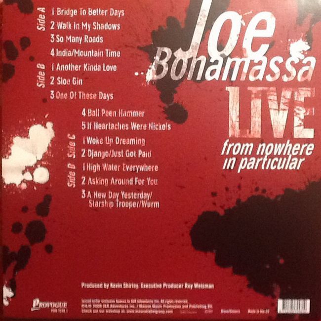 Оприлюднений у 2012 році, альбом "Live From Nowhere In Particular" зібрав у собі вибухові живі виступи Joe Bonamassa, які відбулися в різних куточках світу. Кожен трек є подією, кожна нота переповнена пристрастю і технічною майстерністю Джо, який веде слухачів крізь приголомшливі пейзажі блюз-року.