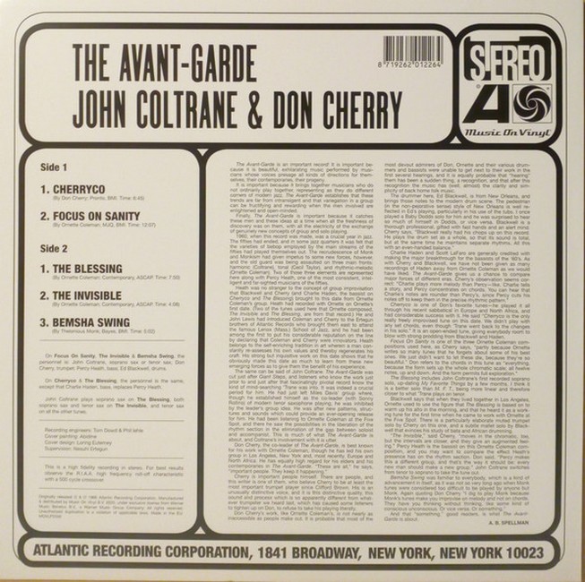 Фірмова вінілова платівка (VINYL)The Avant-Garde is an album credited to jazz musicians John Coltrane and Don Cherry that was released in 1966 by Atlantic Records. It features Coltrane playing several compositions by Ornette Coleman accompanied by the members of Coleman's quartet: Cherry, Charlie Haden, and Ed Blackwell. The album was assembled from two unissued recording sessions at Atlantic Studios in New York City in 1960.