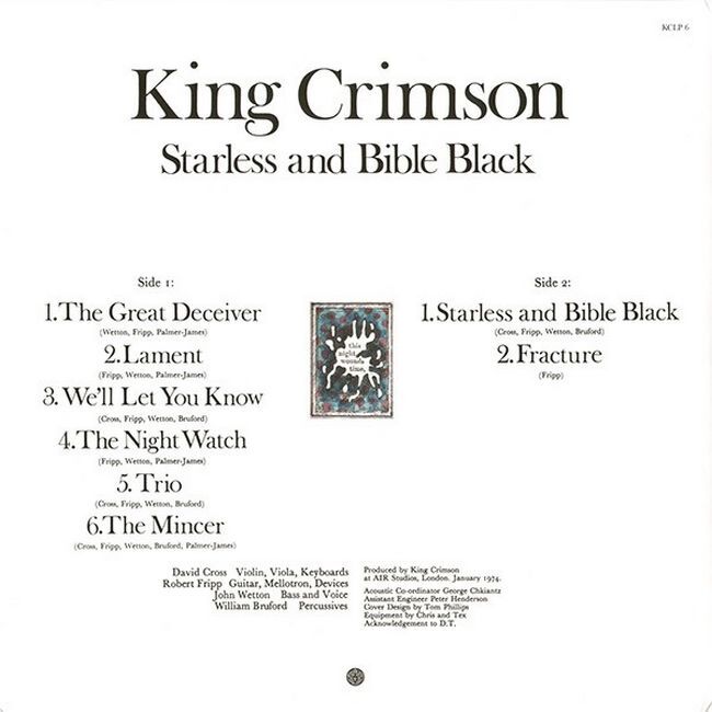 Коли мова заходить про Prog Rock, ім'я King Crimson стоїть зовсім поруч з визначенням жанру. Альбом "Starless And Bible Black", вперше випущений у середині 70-х, вважається одним з піків творчості гурту. Це альбом, де кожен трек переплетений із наступним, створюючи безперервну симфонію звуків і емоцій, відлуння якої чути навіть після десятиліть.
