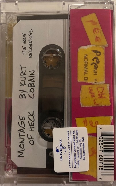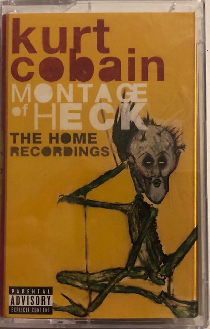 Ліцензійна касета (CASSETTE)Montage of Heck: The Home Recordings is a compilation of home recordings by Kurt Cobain that were used as the soundtrack to the film Kurt Cobain: Montage of Heck, released posthumously on November 13, 2015 by Universal Music. The album was released as a standard 13-track CD, a 31-track deluxe album, and an audio cassette. The 13-track standard version focuses on the music found on Cobain's personal cassettes and the 31-track deluxe version showcases tracks from the documentary including spoken word, demos and full songs.