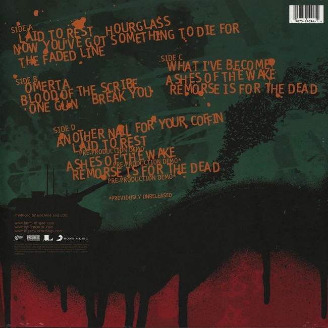 Фірмова вінілова платівка (VINYL)Ashes of the Wake is the fourth studio album and first major-label release by American heavy metal band Lamb of God, released in 2004 via Epic Records. The album debuted at number 27 on the Billboard 200, selling 35,000 copies in its first week and was rated by Guitar World as the 49th greatest Guitar Album of all Time. This album also was rated by Metal Hammer as the 5th greatest Metal Album of The 21st Century.
