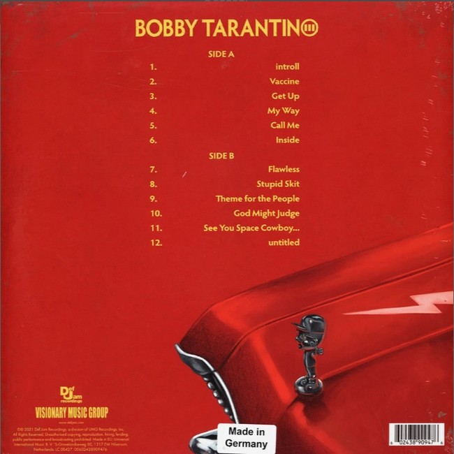 Фірмова вінілова платівка (VINYL)Bobby Tarantino III is the seventh mixtape by American rapper Logic. It was released on July 30, 2021, through Def Jam Recordings and Visionary Music Group. The mixtape features a sole guest appearance from English actress and singer-songwriter Cynthia Erivo, who is featured on the sixth track, "Inside".