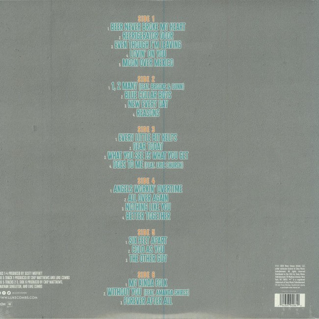 Фірмова вінілова платівка (VINYL)What You See Is What You Get is the second studio album by American country music artist Luke Combs. It was released on November 8, 2019 through River House Artists and Columbia Nashville. It includes all five songs previously featured on the 2019 EP The Prequel, including the singles "Beer Never Broke My Heart" and "Even Though I'm Leaving" in addition to the track "1, 2 Many" (a collaboration with Brooks & Dunn), the single "Does to Me", and later the promotional single "Six Feet Apart". Combs toured North America throughout the remainder of 2019 and was to headline the C2C: Country to Country festival in Europe in 2020 in promotion of the album, however the festival was canceled due to the COVID-19 pandemic. Seven singles from the album, "Beer Never Broke My Heart", "Even Though I'm Leaving", "Does to Me", "Lovin' on You", "Better Together", "Forever After All" and "Cold as You", reached number one on the Billboard Country Airplay chart.