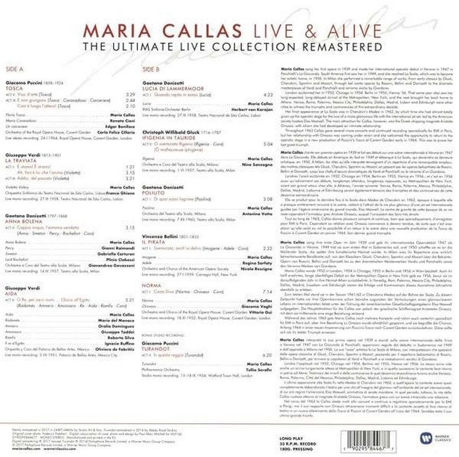 Фірмова вінілова платівка (VINYL)Maria Callas (born Maria Anna Cecilia Sofia Kalogeropoulos; December 2, 1923 – September 16, 1977) was an American-born Greek soprano who was one of the most renowned and influential opera singers of the 20th century. Many critics praised her bel canto technique, wide-ranging voice and dramatic interpretations. Her repertoire ranged from classical opera seria to the bel canto operas of Donizetti, Bellini, and Rossini, and further to the works of Verdi and Puccini, and in her early career to the music dramas of Wagner. Her musical and dramatic talents led to her being hailed as La Divina ("The Divine One").