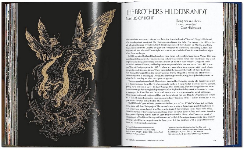 Fantasy art, that colorful blend of myth, muscle and sexy maidens, took off in 1923 with the launch of Weird Tales magazine, was reinvigorated in the 1960s with The Lord of the Rings, Conan the Barbarian paperbacks with Frank Frazetta covers, and the late ’60s emergence of fantasy psychedelia. It went big in the ’70s with the role-playing game Dungeons & Dragons, the brilliant French magazine Metal Hurlant, and the first Star Wars film. The number of active artists peaked in that decade, but a new generation of fans discovered the genre through fantasy trading card games in the ’90s, leading to a massive interest in the art form today. Frank Frazetta’s oil paintings—when they infrequently come to market—have sold for more than $ 5 million in recent years. Fans line up at Comic-Cons to meet Boris Vallejo, Rodney Matthews, Greg Hildebrandt, Michael Whelan, and Philippe Druillet, and memorialize dead icons HR Giger, Jeffrey Catherine Jones, and Frazetta. Imagine how eagerly they’ll welcome TASCHEN’s History of Fantasy Art, including all the artists listed above and more.This book features original paintings, contextualized by preparatory sketches, sculptures, calendars, magazines, and paperback books, for an immersive dive into this dynamic, fanciful genre. Insightful bios go beyond Wikipedia to give a more accurate and eye-opening look into the life of each artist. This collection will reign as the most exquisite and informative guide to this popular subject for years to come.