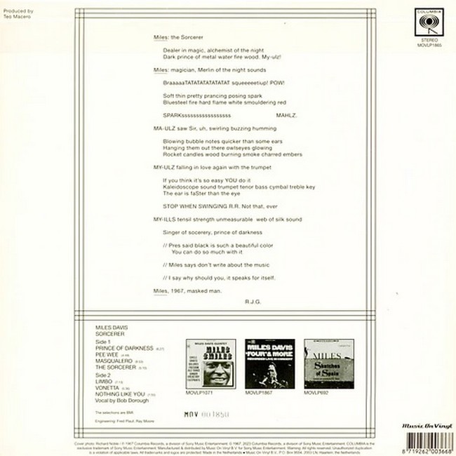 Фірмова вінілова платівка (VINYL)Sorcerer is an album recorded in May 1967 by the Miles Davis quintet. It is the third of six albums that this quintet recorded. It also includes one track from a 1962 session with vocalist Bob Dorough, which was the first time Wayne Shorter recorded with Davis. Davis does not play on the second track, "Pee Wee". The album's cover is a profile photo of actress Cicely Tyson, who at the time was Davis's girlfriend (and later his wife).