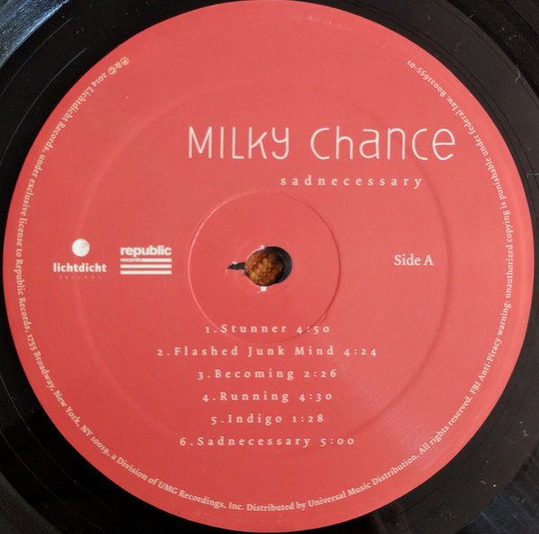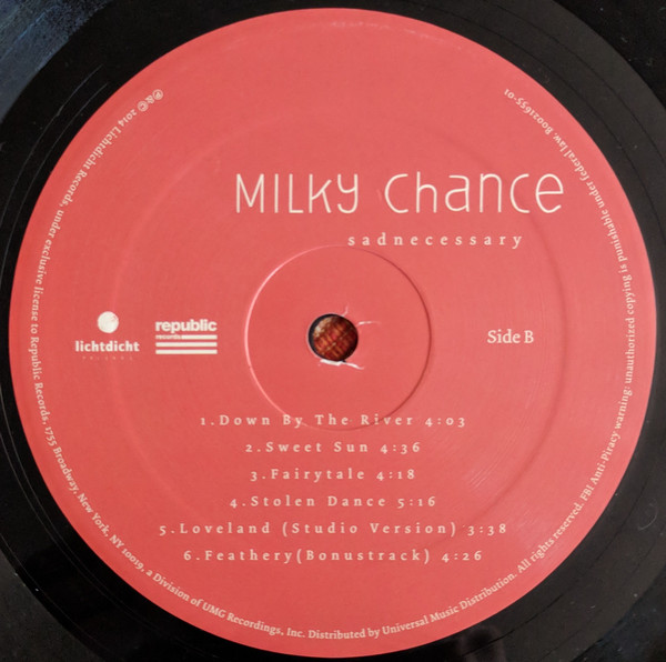 Перша студійна платівка від німецького інді-поп дуету Milky Chance, "Sadnecessary", є магнетичною сумішшю електроніки, реггі та фолку, випущена в 2014 році на Lichtdicht Records. Стан платівки - запечатаний (SS), що обіцяє ідеальний звук та якість.