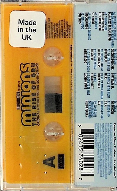 Ліцензійна касета (CASSETTE)Minions: The Rise of Gru (Original Motion Picture Soundtrack) is the soundtrack album for the film of the same name, released on July 1, 2022, through Decca Records. The Jack Antonoff-produced soundtrack consists of various contemporary artists covering famous funk, pop, and soul hits of the 1970s. "Turn Up the Sunshine" by Diana Ross and Tame Impala was released as the album's lead single on May 20, 2022. Four more singles followed, "Desafinado" by Kali Uchis, "Funkytown" by St. Vincent, "Hollywood Swinging" by Brockhampton, and "Dance to the Music" by H.E.R.