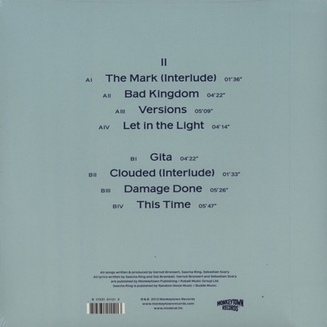 II is the second studio album by electronic trio Moderat. It was released in August 2013 on Monkeytown Records.