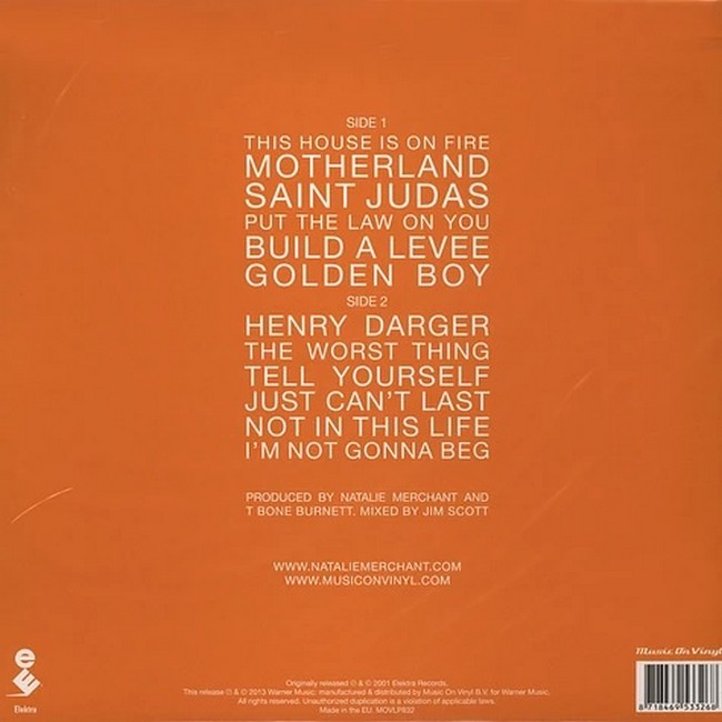 Фірмова вінілова платівка (VINYL)Motherland is the third solo album by Natalie Merchant, released in 2001. It was her last studio album released on Elektra Records.
