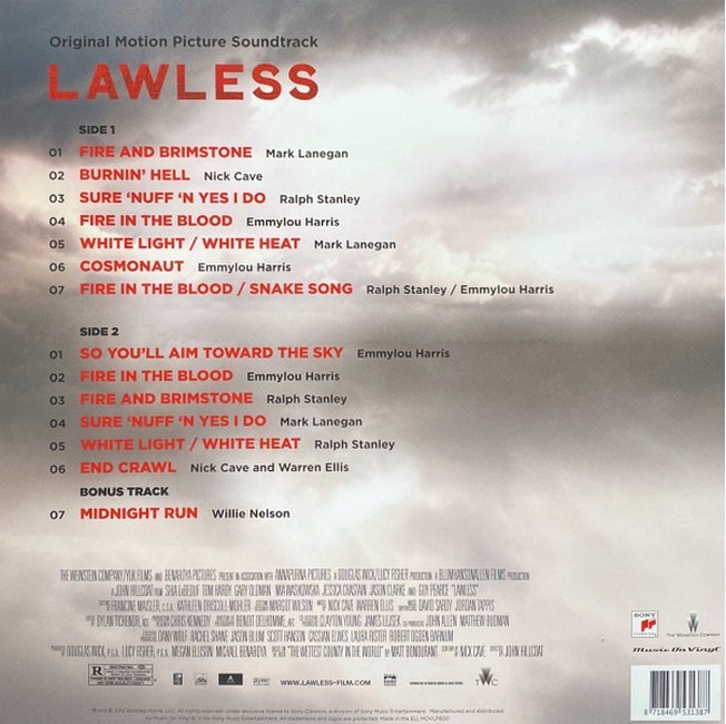 Створений Nick Cave та Warren Ellis, цей саундтрек приніс із собою справжнє хвилювання та музичне характерне навантаження, так важливе для атмосфери фільму "Lawless". Гармонії та мелодії в жанрах Rock, Country Rock та Folk доповнюють яскраву картину американського Півдня епохи Сухого закону, відтворюючи не лише емоції персонажів, а й самого часу.