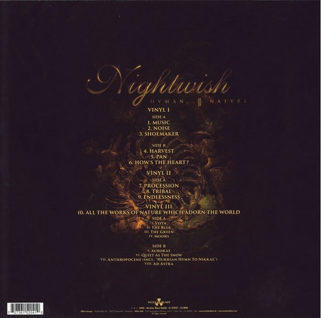 Зануртеся в заклинання symphonic metal з новим альбомом від легендарних Nightwish, який названо "Human. :||: Nature." Цей справжнісінька епопея, що чекає на ваші вуха. Упаковано в кольорові вінілові платівки, цей альбом - справжня знахідка для колекціонерів та шанувальників гурта.
