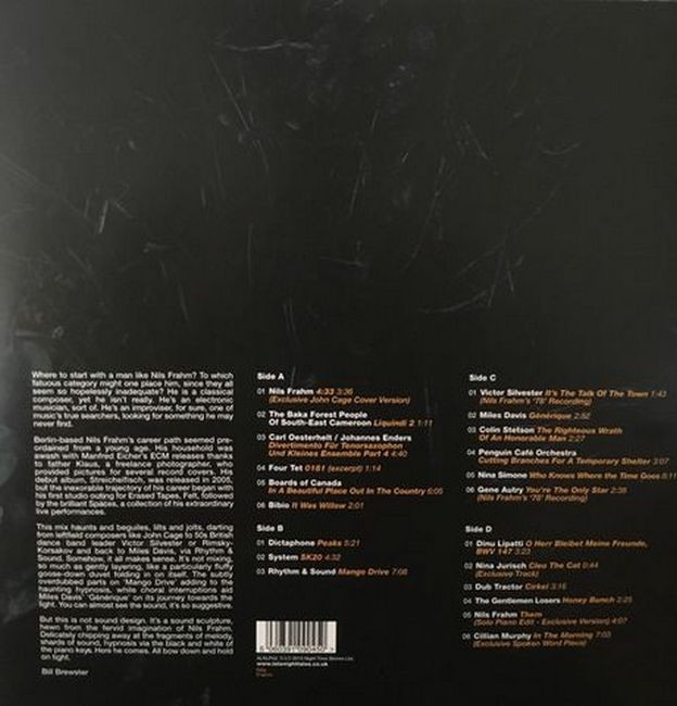 Фірмова вінілова платівка (VINYL)Late Night Tales: Nils Frahm is a mix album compiled by German composer Nils Frahm, released on 11 September 2015. It is a part of the Late Night Tales series of albums released by Night Time Stories.