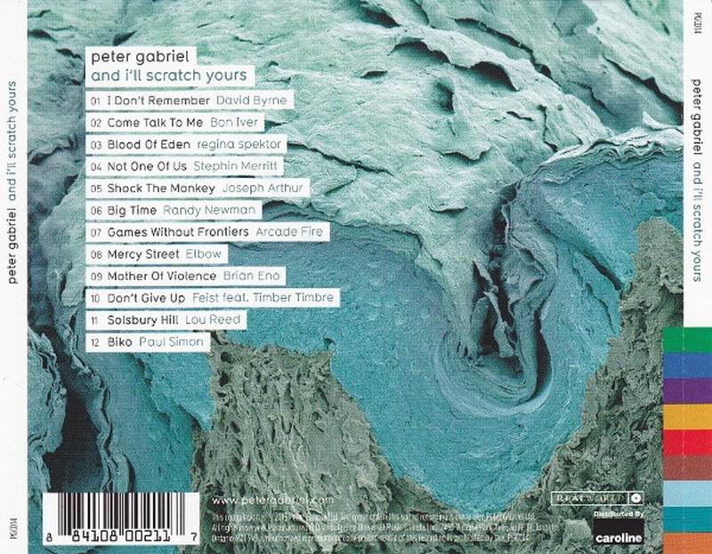 Фірмовий CD-дискAnd I'll Scratch Yours (originally announced as I'll Scratch Yours) is a compilation album developed by the English rock musician Peter Gabriel. Initially slated for release in 2010, the album was released on 24 September 2013. The original concept was that And I'll Scratch Yours would serve as a companion piece to Gabriel's 2010 covers album Scratch My Back. The idea was to give the artists whose songs Gabriel covered on Scratch My Back a medium to reciprocate – And I'll Scratch Yours would feature those artists covering Gabriel's songs. However, three artists (David Bowie, Neil Young, and Radiohead) declined to record covers of Gabriel's material. Therefore, three new artists (Brian Eno, Joseph Arthur, and Feist) contributed covers to the album instead.