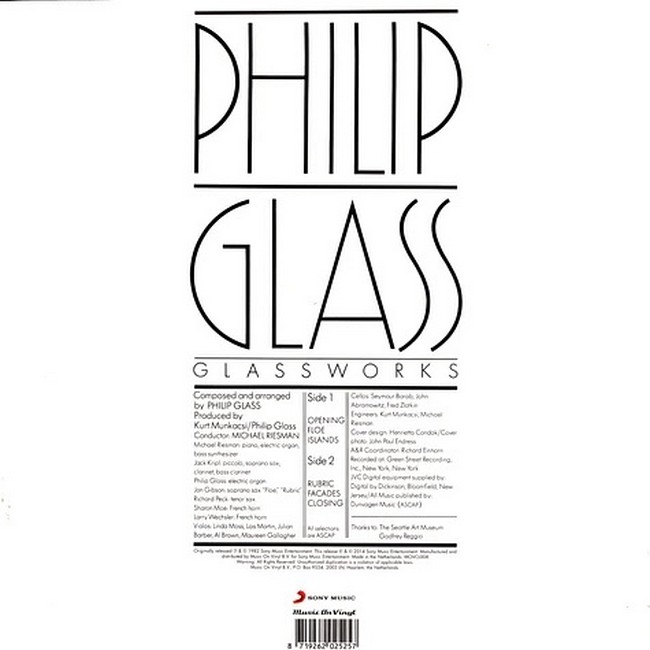 Glassworks is a chamber music work of six movements by Philip Glass. Following his larger-scale concert and stage works, it was Glass's successful attempt to create a more pop-oriented "Walkman-suitable" work, with considerably shorter and more accessible pieces written for the recording studio.