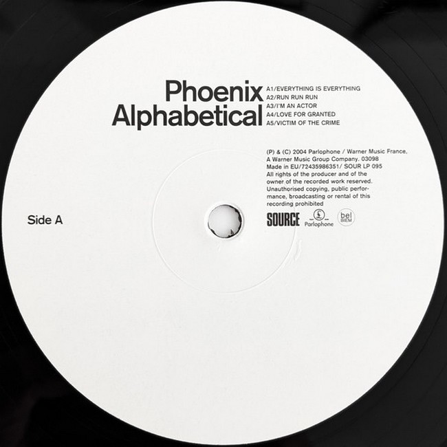 Фірмова вінілова платівка (VINYL)Alphabetical is the second studio album by French indie pop band Phoenix, released in 2004. The album has two singles, "Everything Is Everything" and "Run Run Run".