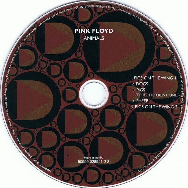 Фірмовий CD-дискAnimals is the tenth studio album by English rock band Pink Floyd, released on 21 January 1977 through Harvest Records and Columbia Records. It was self-produced at Pink Floyd's Britannia Row Studios in London throughout 1976. The album continued the long-form compositions that made up their previous works such as Meddle (1971), and Wish You Were Here (1975).