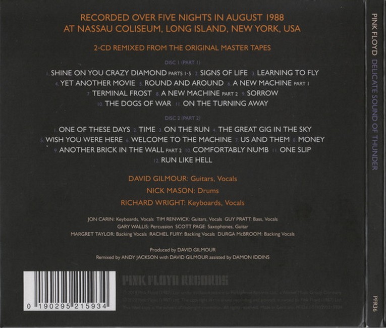 Фірмовий CD-дискDelicate Sound of Thunder is a live album by English band Pink Floyd. It was recorded over five nights at the Nassau Coliseum in Uniondale, New York, in August 1988 and mixed at Abbey Road Studios in September 1988. It was released on 21 November 1988, through EMI Records in the UK and Columbia Records in the US.