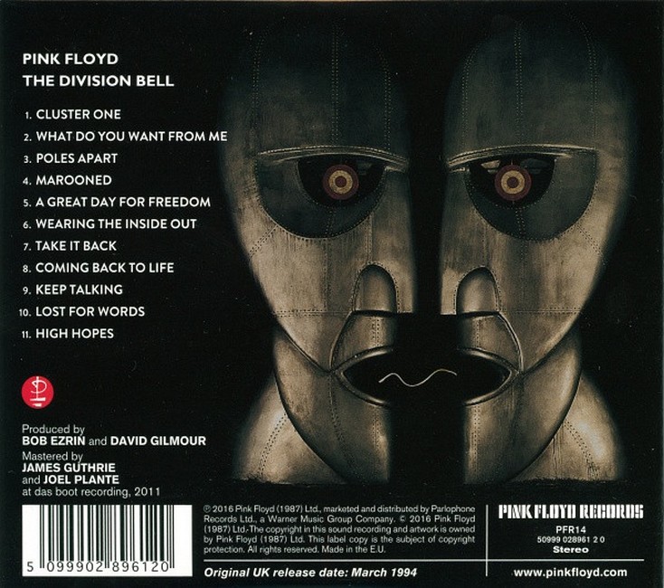 Фірмовий CD-дискThe Division Bell is the fourteenth studio album by the English rock band Pink Floyd, released on 28 March 1994 by EMI Records in the United Kingdom and on 4 April by Columbia Records in the United States. The second Pink Floyd album recorded without founding member Roger Waters, The Division Bell was written mostly by guitarist and singer David Gilmour and keyboardist Richard Wright. It features Wright's first lead vocal on a Pink Floyd album since The Dark Side of the Moon (1973). Gilmour's fiancee, the novelist Polly Samson, co-wrote many of the lyrics, which deal with themes of communication. It was the last Pink Floyd studio album to be composed of entirely new material, and the last recorded with Wright, who died in 2008.