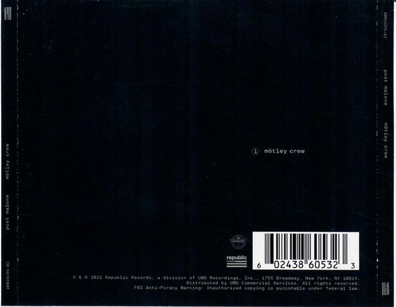 Фірмовий CD-диск"Motley Crew" is a song by American rapper and singer Post Malone, released on July 9, 2021, through Republic Records. The song marked his first solo release in almost two years.