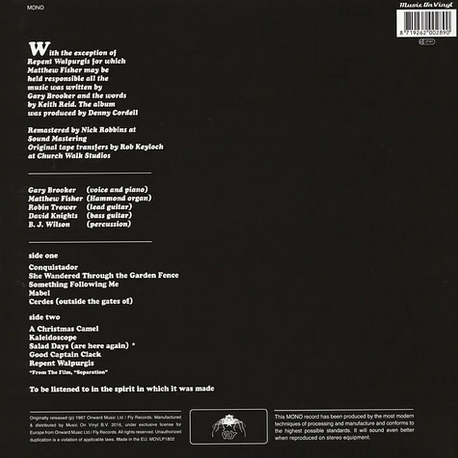 З моменту свого дебютного релізу у 1967 році, Procol Harum стали синонімом неперевершеної майстерності. У своєму дебютному альбомі, який і втілений у цьому перевиданні Music On Vinyl 2016 року, вони змішували рок, поп та психоделічні елементи створюючи треки, які не просто лунали - вони зачаровували.