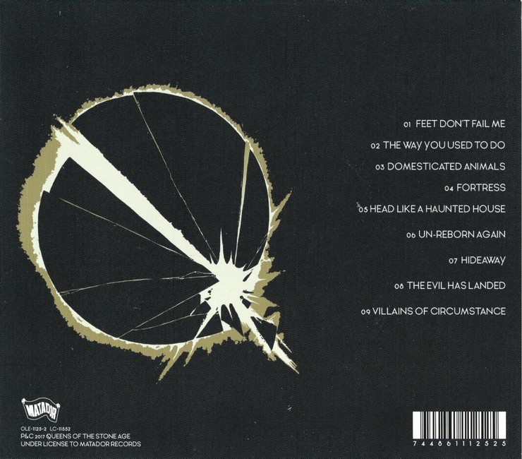 Фірмовий CD-дискVillains is the seventh studio album by American rock band Queens of the Stone Age, released on August 25, 2017 through Matador. The album was announced on June 14, with a teaser trailer taking the form of a comedy skit featuring the band performing a polygraph test with Liam Lynch. The first single, "The Way You Used to Do", was released the following day along with the announcement of a world tour. Villains is the first Queens of the Stone Age album to not feature any special guest musicians, the second to not feature Mark Lanegan, and the first to feature Jon Theodore as full time member of the band.