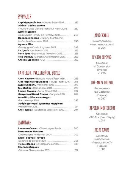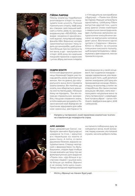 Натуральні вина не просто легко п’ються. Це — великі вина, що викликають сильні емоції. Чотириста двадцять чотири сторінки видання присвячені їм. Тут представлено добірку зі 100 найвидатніших вин, виготовлених у найкращих традиціях сучасності. Вони доводять, що «натуральне» також означає «емоційне», «живе».