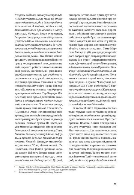 Два основні завдання книжки — зламати стереотипи про натуральне вино (простеньке, недосконале, незрозуміле, довго не зберігається, швидко псується…) та віддати шану людям, які рік у рік затято працюють, аби виростити найліпший у світі виноград, а тоді вкладають усі свої переконання, хист і душу, щоб зробити з нього напрочуд живі та глибоко особисті вина.