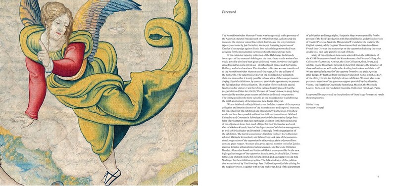 Эта публикация показывает огромное богатство гобеленов через десятки деталей. Он сопровождает выставку Музея истории искусств в Вене, где хранится бывшая императорская коллекция гобеленов, с 26 сентября 2023 года по 14 января 2024 года.