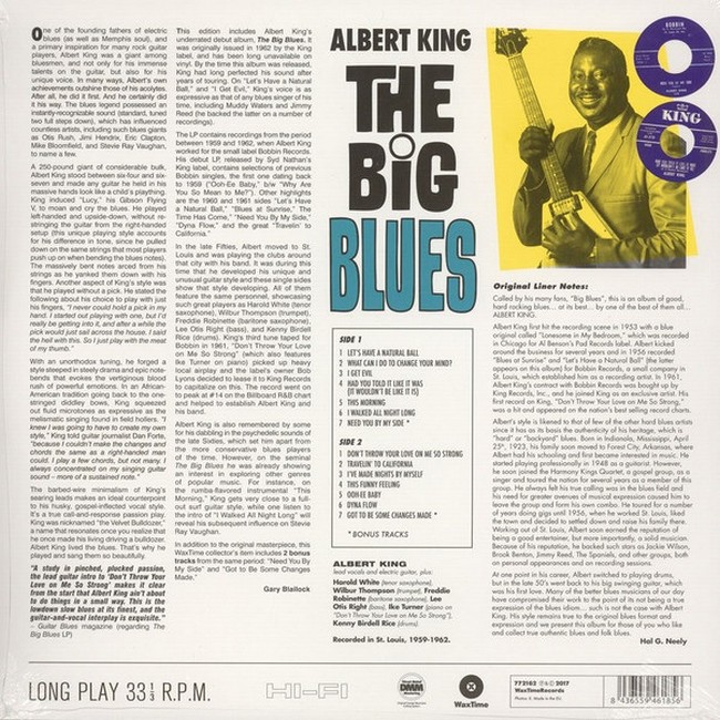 Фірмова вінілова платівка (VINYL)The Big Blues is a compilation album by Albert King, released by King Records in 1962. It is his first album and the only one before he signed with Stax Records, where he would record most albums during his career. The album was later reissued under the title Travelin' to California.
