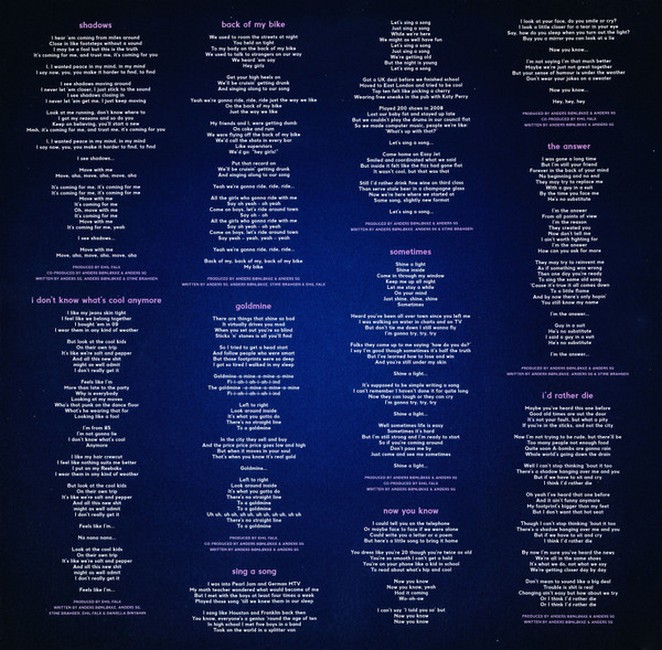 | A2 | I Don't Know What's Cool Anymore Backing Vocals – Daniella Binyamin Producer – Emil Falk Written-By – Anders Bonlokke, Anders SG*, Daniella Binyamin, Emil Falk, Stine Bramsen | 3:12 | |