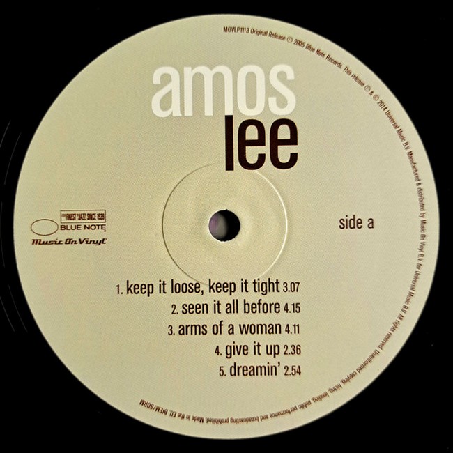 Фірмова вінілова платівка (VINYL)Amos Lee is the debut album by American singer and songwriter Amos Lee. The album was released by Blue Note on March 1, 2005, and produced by Lee Alexander, who played bass for Norah Jones.