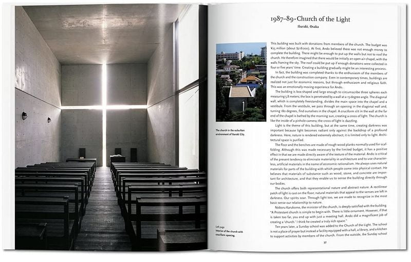 In this essential TASCHEN introduction to Tadao Ando we explore the hybrid of tradition, modernism, and function that allows his buildings to enchant architects, designers, fashion designers, and beyond. Through key projects including private homes, churches, museums, apartment complexes, and cultural spaces, we explore a uniquely monumental yet comforting aesthetic that draws as much on the calm restraint of Japanese tradition as the compelling modernist vocabularies of Bauhaus and Le Corbusier.