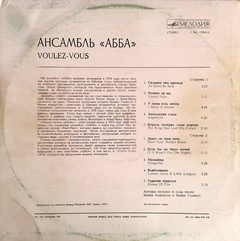 Voulez-Vous by the Swedish band ABBA, released in 1979, is the band's sixth studio album and represents a notable shift in their musical style, incorporating more disco and dance elements compared to their earlier, more pop-oriented work. The album includes hits like "Chiquitita," "Does Your Mother Know," and the title track "Voulez-Vous," which became some of ABBA's most iconic songs. This release was a commercial success, solidifying the band's international popularity during the late 1970s and early 1980s. Voulez-Vous also features a more polished and sophisticated sound, with lush arrangements and a focus on rhythm, reflecting the disco era's influence on ABBA's music. The album marked a key moment in ABBA's career, further establishing them as one of the best-selling music artists of all time.