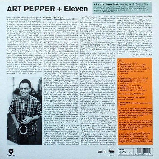 Фірмова вінілова платівка (VINYL)Art Pepper + Eleven – Modern Jazz Classics is a 1960 jazz album by saxophonist Art Pepper and a small big band performing arrangements by Marty Paich, who also directed the ensemble.