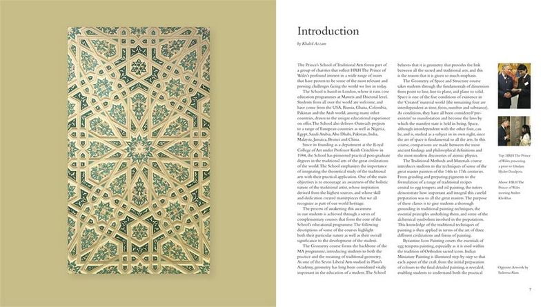 The book is organized into three chapters. The first explores the fundamental principles of Islamic arts and crafts: geometry, islimi and calligraphy. The second introduces widely used materials and tools, including pigments, gesso panels, gilding equipment, brushes, pens and paper. The third provides fully illustrated step-by-step guides to the crafting of artefacts and artworks, including Kufic calligraphy, plaster carving, Mughal and Persian miniature painting, parquetry, ceramics, mosaic and glassblowing. The history and significance of the techniques and materials used are explained, accompanied by numerous illustrations of masterworks found throughout the Islamic world.