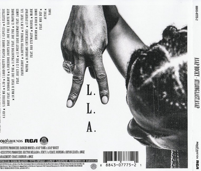 Фірмовий CD-дискAt. Long. Last. ASAP (stylized as AT.LONG.LAST.A$AP) is the second studio album by American rapper ASAP Rocky. It was released on May 26, 2015, by ASAP Worldwide, Polo Grounds Music, and RCA Records. The record serves as a sequel from Rocky's previous studio effort Long. Live. ASAP (2013). The album's executive production was provided by Danger Mouse, mentor ASAP Yams and Rocky himself, featuring production by Rocky and Danger Mouse, as well as a variety of several high-profile producers, including co-executive producers Hector Delgado and Juicy J, Jim Jonsin, FnZ, Frans Mernick, Kanye West, Thelonious Martin, and Mark Ronson, among others. The album features guest appearances from Bones, Joe Fox, Future, Schoolboy Q, Kanye West, Lil Wayne, and A-Cyde, among others.