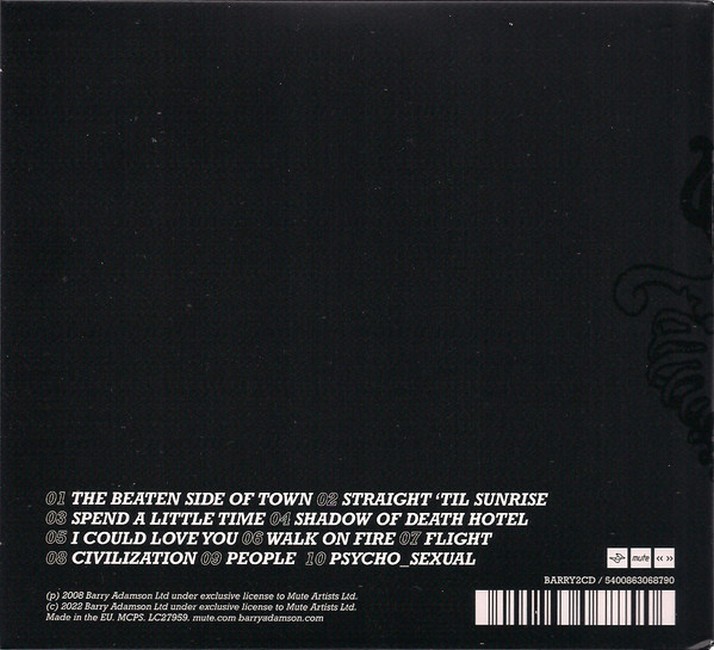 Фірмовий CD-дискBarry Adamson (born 11 June 1958) is an English pop and rock musician, composer, writer, photographer and filmmaker. He came to prominence in the late 1970s as a member of the post-punk band Magazine and went on to work with Visage, Nick Cave and the Bad Seeds, and the electro musicians Pan Sonic. In addition to prolific solo work, Adamson has also remixed Grinderman, The Jon Spencer Blues Explosion, Recoil and Depeche Mode. He also worked on the soundtrack for David Lynch's surrealistic crime film Lost Highway.