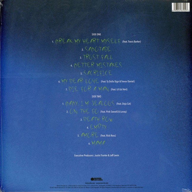 Фірмова вінілова платівка (VINYL)Better Mistakes is the second studio album by American singer Bebe Rexha, released on May 7, 2021, by Warner Records. It serves as the follow-up to her debut studio album, Expectations (2018) and contains guest features from Travis Barker, Ty Dolla Sign, Trevor Daniel, Lil Uzi Vert, Doja Cat, Pink Sweats, Lunay and Rick Ross. The album was preceded by the singles "Baby, I'm Jealous", "Sacrifice", and "Sabotage".