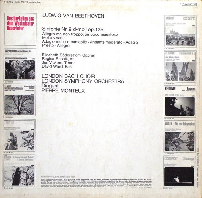 Beethoven And Pierre Monteux And The London Symphony Orchestra – Symphony No. 9 In D Minor, Op. 125 "Choral"