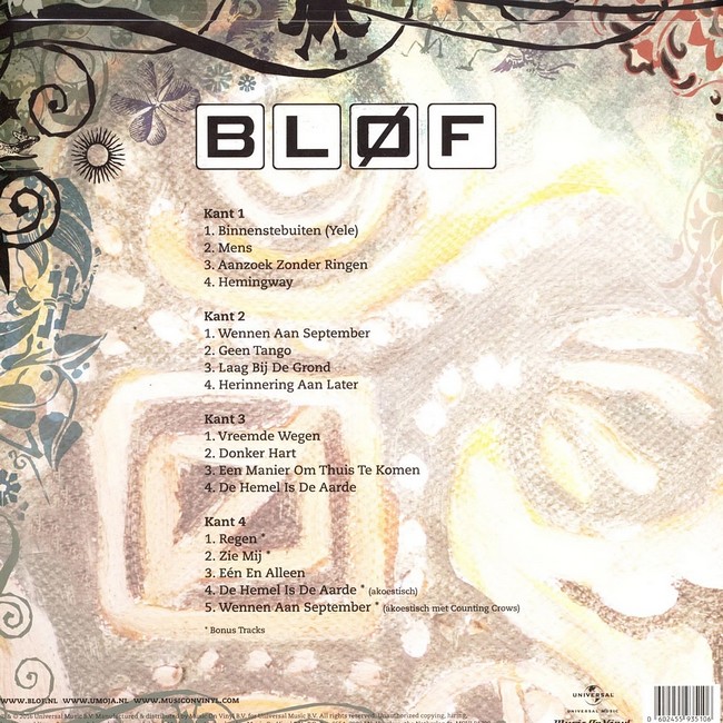 Фірмова вінілова платівка (VINYL)BLOF is a Dutch rock band from Vlissingen, Zeeland, founded in 1992 by Peter Slager. Current members are Peter Slager (bass), Paskal Jakobsen (lead vocals and guitar), Bas Kennis (keyboards), and Norman Bonink (drums). Former members are Henk Tjoonk (drums) and Chris Gotte (drums).