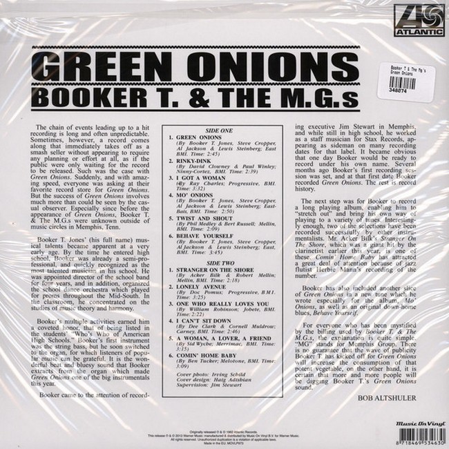 Фірмова вінілова платівка (VINYL)Green Onions is the debut album by Booker T. & the M.G.'s, released on Stax Records in October 1962. It reached number 33 on the pop album chart in the month of its release. The title single was a worldwide hit and has been covered by dozens of artists, including the Blues Brothers and Roy Buchanan (both with Steve Cropper on guitar), as well as The Ventures, Al Kooper, The Shadows, Mongo Santamaria, Deep Purple (Live and studio versions) and Count Basie.